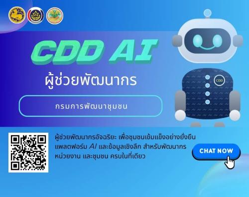 ระบบ CDD AI เป็นนวัตกรรมปัญญาประดิษฐ์ที่พัฒนาขึ้นเพื่อช่วยสนับสนุนการทำงานของเจ้าหน้าที่พัฒนาชุมชน ผู้นำชุมชน และประชาชน โดยครอบคลุมการทำงานในหลายมิติ ได้แก่