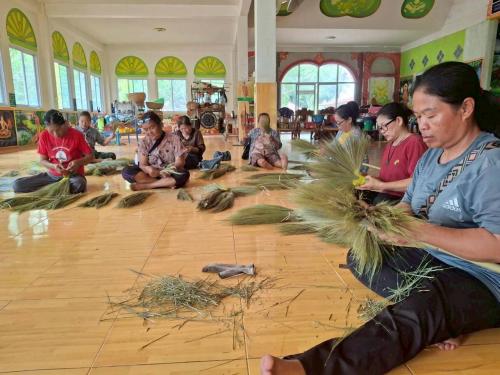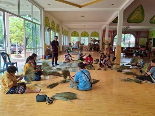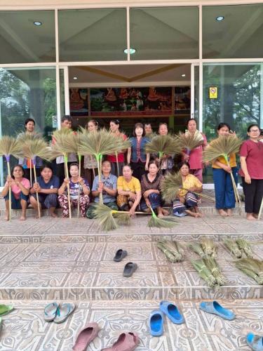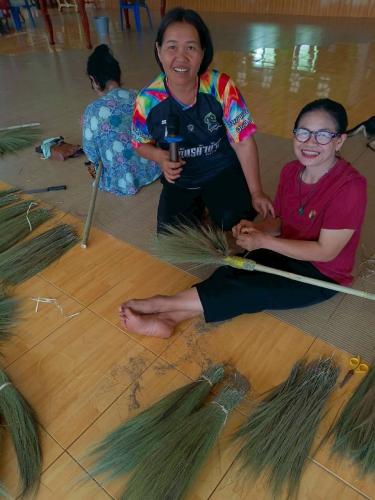 -> กิจกรรมในครั้งนี้ ได้รับเกียรติจาก นางระวีวรรณ ดาโอภา ปราชญ์ชุมชน มาสาธิตการทำไม้กวาดดอกหญ้า ซึ่งเป็นอาชีพเสริมที่ใช้วัสดุในท้องถิ่น ลงทุนน้อย สามารถสร้างรายได้ให้กับครัวเรือน โดยผู้เข้าร่วมได้ฝึกปฏิบัติจริง เรียนรู้ตั้งแต่ขั้นตอนการคัดเลือกดอกหญ้า การมัด การเย็บ ไปจนถึงการจัดจำหน่าย สร้างโอกาสในการต่อยอดเป็นอาชีพในชุมชน